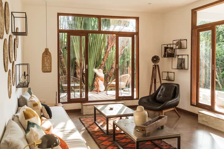 充满质朴的魅力,了解到室内设计由当地建筑师设计并不奇怪:巴厘岛家具,精美的现代作品和抛光水泥地板,对细节的关注令人钦佩。 这个波西米亚天堂是奢华度假的理想之选,在那里,那些渴望真实和品味悠闲的巴厘岛生活方式的人!
