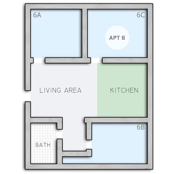 整栋住宅中的一个独立房间,以及共用区域。