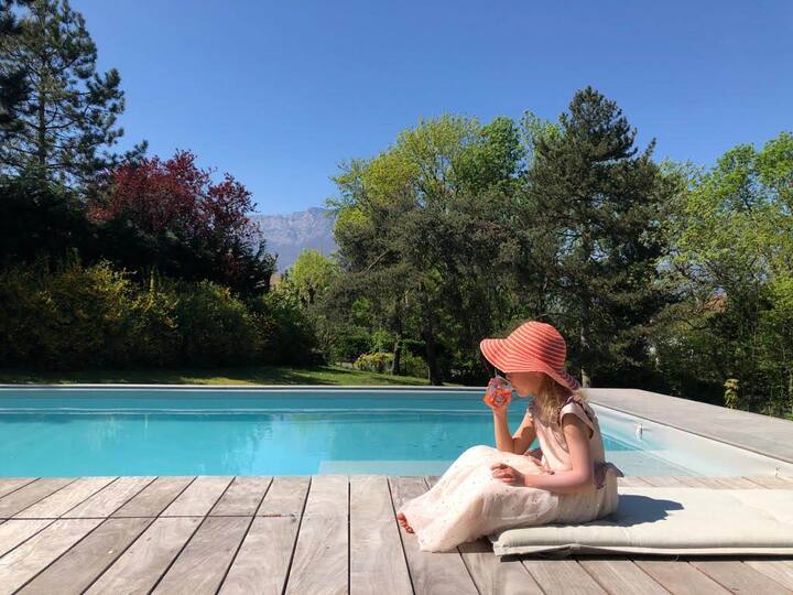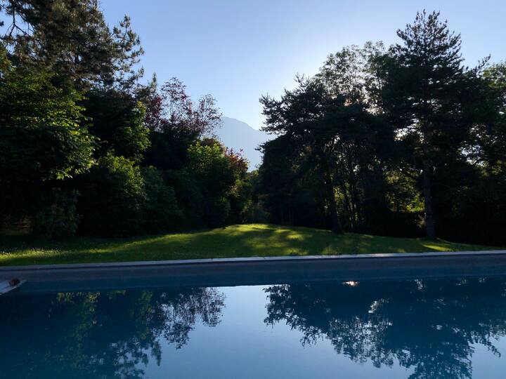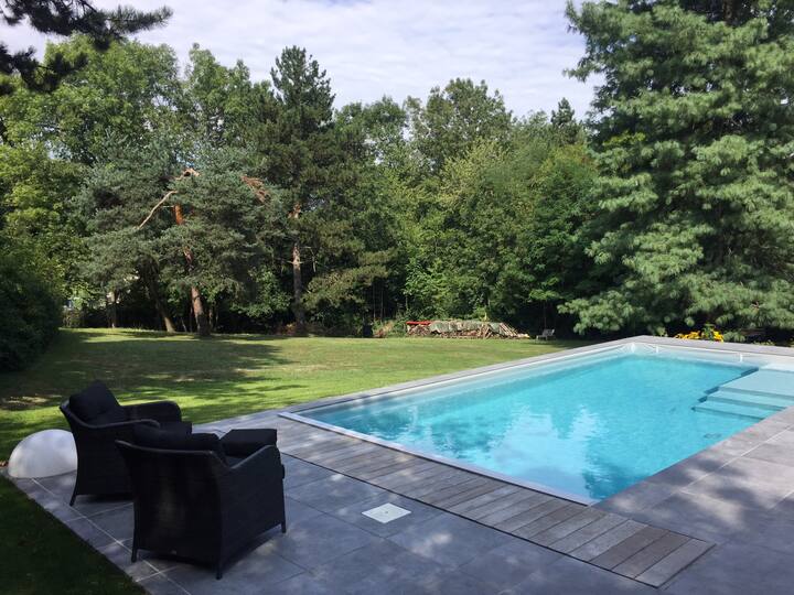 别墅环境安静,带有绿树成荫的公园和游泳池