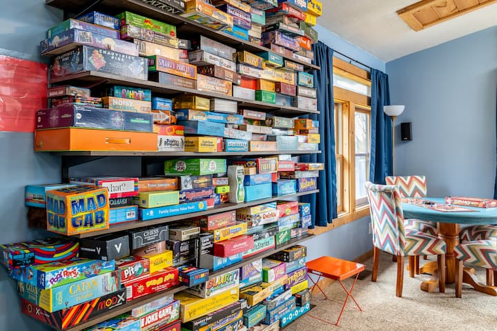 爱彼迎房源中,🎮这里拥有比国内任何其他房源都多的棋盘/纸牌游戏,多达500多种! 是的,你没看错! 超过500。 这是田纳西州最大的游戏收藏! 此外还有NES Classic(30个游戏)、Super Nintendo Classic(21个游戏)、SEGA Classic(42个游戏)、街机系统(100多个游戏)、桌上足球、林肯原木、13英尺长的乐高墙、木制火车套装、数百个大型积木,以及玉米穴、水桶高尔夫、槌球和梯球等户外游戏。 什么是无聊?在这里找不到!