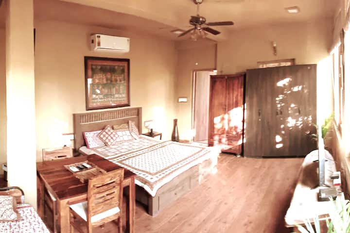 Casa Amba是一座精品服务式别墅,位于Lapkaman绿色宁静的区域,靠近S.P环路的Ognaj Circle。 我们的Signature Terrace Garden Suite宽敞、优雅,配有私人阳光阳台和相邻的客用厨房。 T-G套房非常适合家庭入住、安静度假、快速无线网络到WFH,或在宁静与自然中放松身心! 可安排早餐和餐点,但需额外收费,需提前通知,并视员工空闲情况而定。谢谢