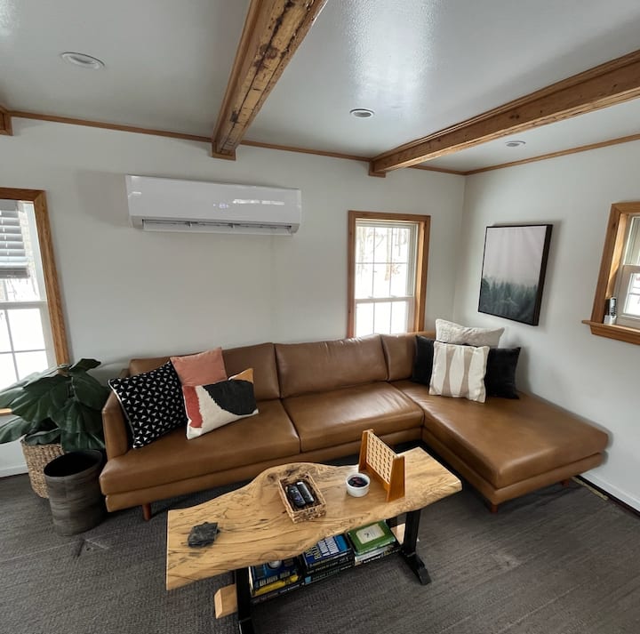 这间美丽的乡村小屋具有现代感,由手工打造,代代相传。最近更新。它位于我们60英亩私人土地的中心。亲近大自然、放松身心、焕发活力的完美场所