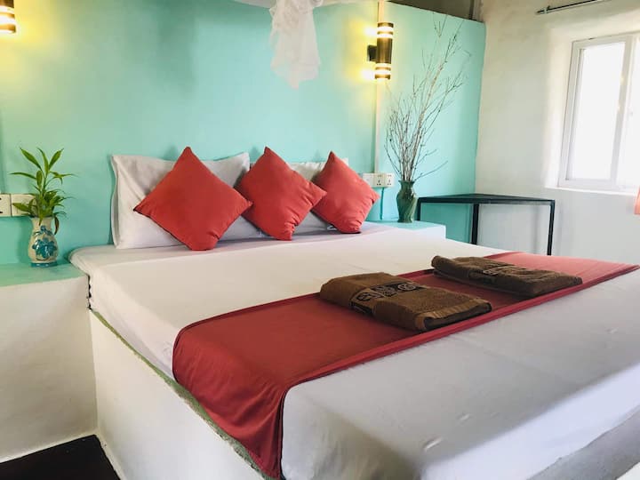 我们的地球建筑花园平房专为自然舒适和轻松生活而设计。 即使在阳光明媚的柬埔寨,它们也比传统的砖砌建筑更凉爽,因为它们是用可持续材料制成的。 每间平房均配有吊扇、带热水淋浴的独立套房卫生间,以及与周围花园完美融合的简约通风装饰。 这里是放松身心、远离喧嚣、沉浸在宁静的波希米亚氛围中的理想空间,靠近大自然,但配备了所有必需品,让您住宿舒适。🌞🌴