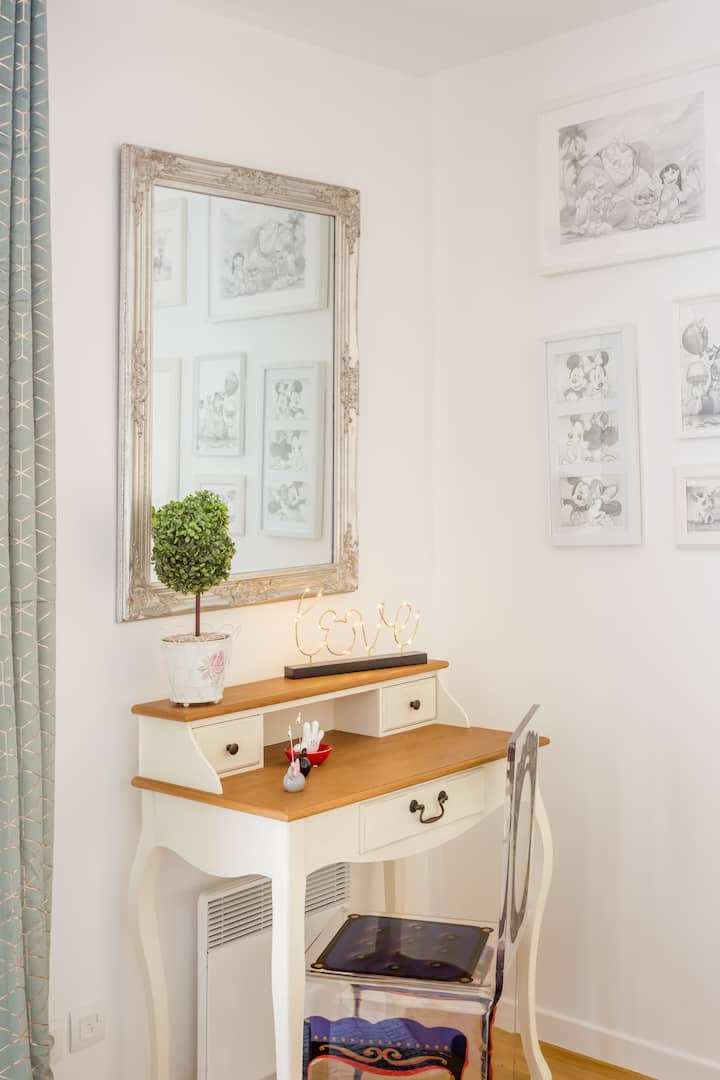 我们是一对自2007年以来一直住在法国的年轻夫妇。我们都从事演艺界工作,我本人是一名喜剧演员和特技演员, Cecilia是一名舞者。我们希望您能探索巴黎迪士尼乐园的魔力,与其他家庭分享这一经历。我们相信您会像我们和我们的孩子一样爱上。