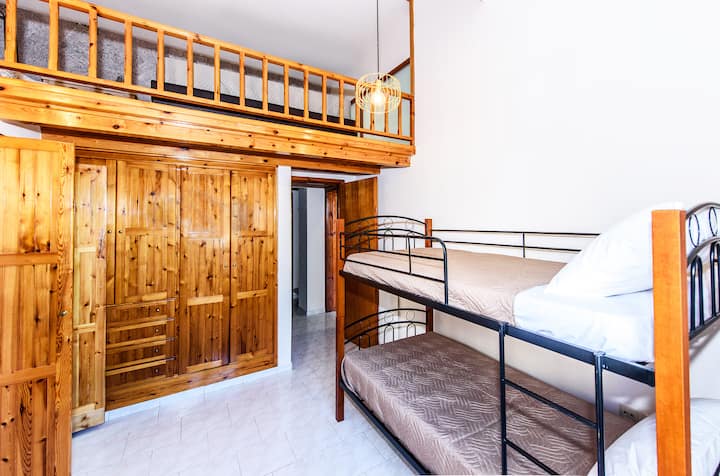 1 张约 1.35 米宽双人床、1张双层床