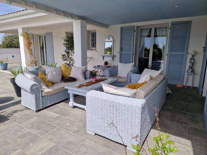 花园是私人的,周围是未铺设的乡村"chemin",所以真的没有交通! 面朝南方的露台非常适合晒太阳。 当太阳太阳太多时,房子的阴凉处也有座位!