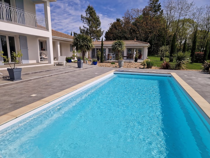 豪华现代房屋建造,配备高规格;轻盈、宽敞、通风。 位于令人惊叹的多尔多涅,坐落在4英亩宁静的乡村,毗邻吉伦特和夏朗德的宝藏。 前往波尔多和贝尔热拉克机场很方便。