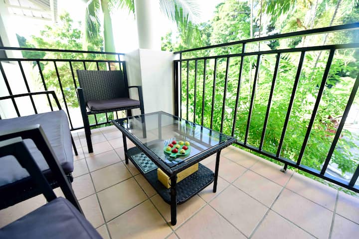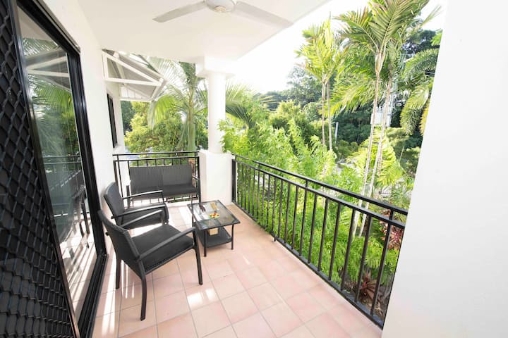 私密安全的2卧室公寓,最近翻修过,配备了新的卫生间、分体式空调、风扇、卧室地板、家具、床上用品、电器和厨房用具。房源设有设备齐全的厨房和洗衣房、地下停车场、遮阳泳池和大量书籍、游戏、拼图和乐高。享受对面的热带皇后花园,或在附近的城堡山徒步旅行。步行5分钟即可抵达Gregory St商店、咖啡馆、酒吧和Strand海滩,步行10分钟即可抵达市区,步行20分钟即可抵达体育场。