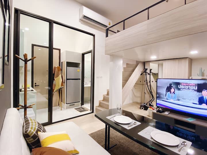 Cozy Loft 5min to MRT/Rama9/Airlink/Joddfairs 中文房東