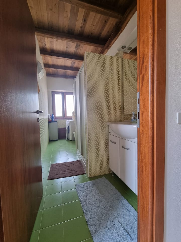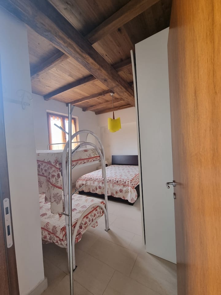 1 张约 1.35 米宽双人床、1张双层床