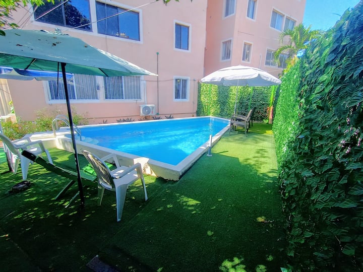 公寓配备游泳池和空调