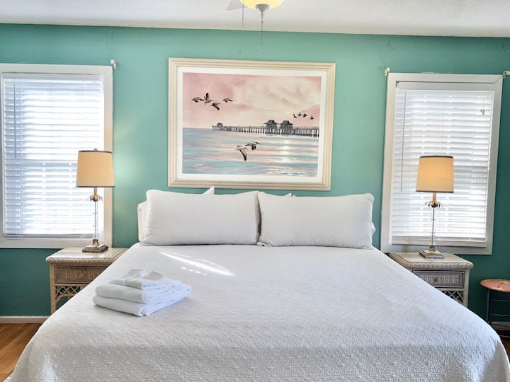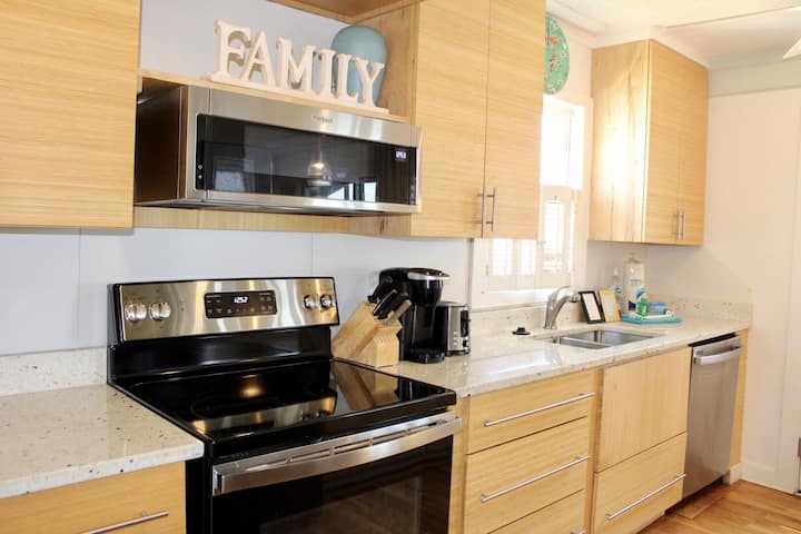 关于该房源,您首先会注意到其温馨正宗的海滩小屋感觉。 这栋房子比较老旧,但经过精心设计,营造出完美的住宿氛围,但拥有干净、装饰精良的美学,距离海滩仅几步之遥,欣赏海景!
