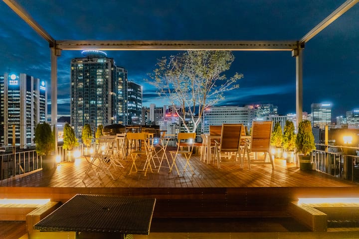 这里有一个漂亮宽敞的屋顶,我经常在这里拍摄韩国电视剧,所以这里拥有明洞最美丽的夜景。 在Atmon的屋顶享用韩国鸡肉和啤酒,同时欣赏南山塔和明洞的夜景。 还有烧烤架,因此您可以举办烧烤派对,欣赏美丽的夜景。