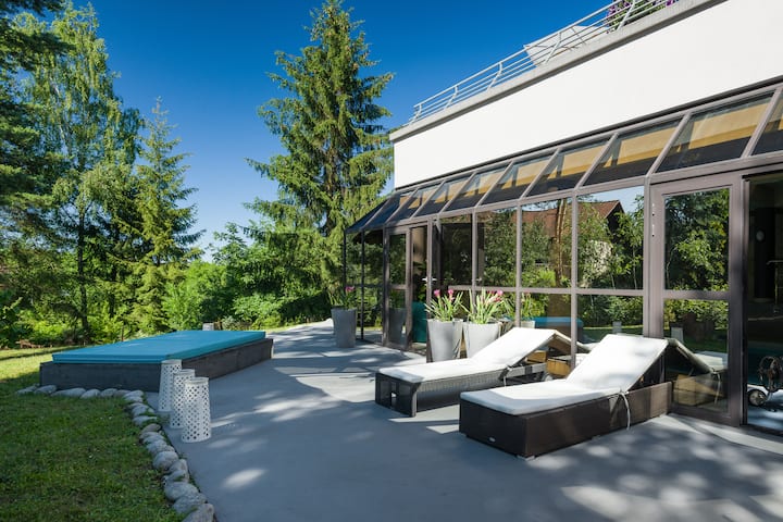 美丽的别墅,带游泳池、桑拿房和花园
