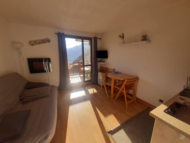 漂亮的20平方米单间公寓,阳台和卓越的景观