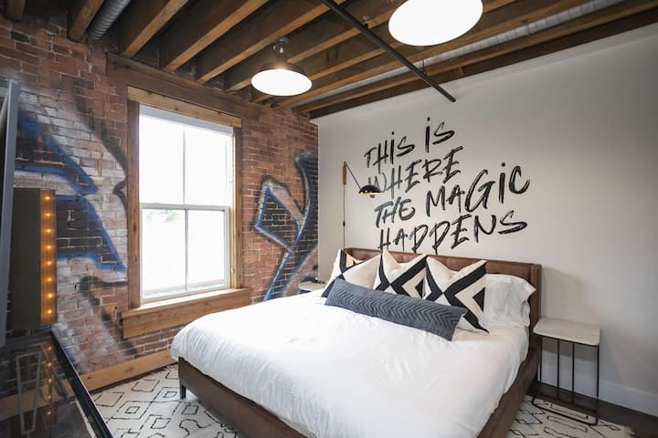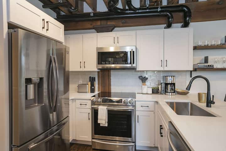 • 充满活力的街区–位于1865开发区,距离The Gulch、百老汇和马拉松村仅几分钟路程。 餐厅、酒吧和娱乐场所都近在咫尺,让您在入住有门禁的历史瑰宝的同时,轻松体验纳什维尔的精华。