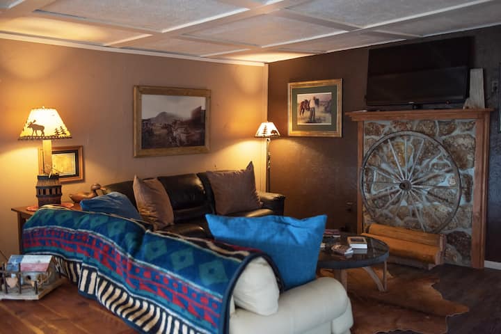 位于米蒂特斯(Meeteetse)的极其舒适和私密的房源,距科迪(Cody)和黄石地区机场以南仅30英里。 从DR和露台可欣赏到壮丽的景色。 实际上,任何一侧或后面都没有邻居! 露台通往后院30英尺x40英尺的围栏。 有很多房间。这个小镇悠闲友好,充满历史和乐趣! 探索肖松尼国家森林、阳光水库和基尔温鬼城。 2座博物馆,到处都是野生动物! 牛仔酒吧的弹孔,也许是来自Butch Cassidy。