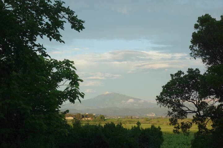 Vue sur le Mont Ventoux et les dentelles de Montmirail- village accessible à pied.