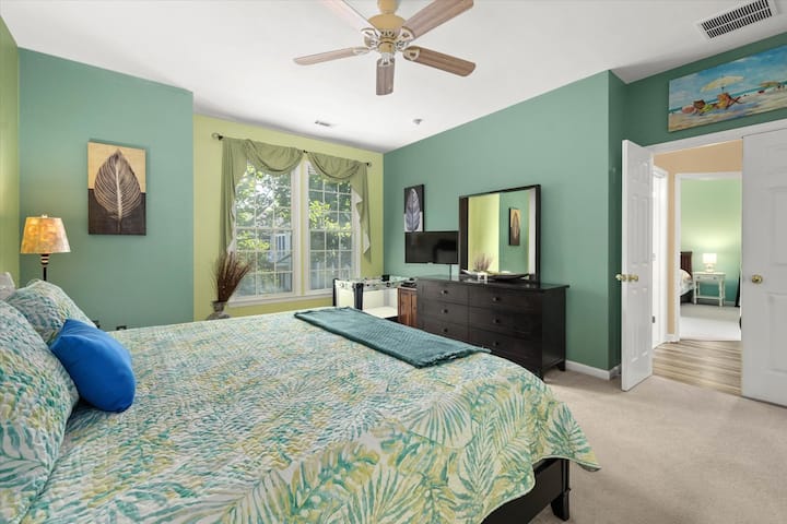 我是Frederick ,欢迎来到我放松的海滩和高尔夫度假胜地。 坐下来,欣赏Bear Trap Dunes屡获殊荣的高尔夫球场第九洞的美景。 这里的便利设施无穷无尽。 我们有3个泳池、1个健身中心、4个泥地网球场、3个匹克球场、2个篮球场、桌上足球桌、乒乓球、热水浴缸和桑拿房、餐厅和酒吧,以及沙滩穿梭巴士。