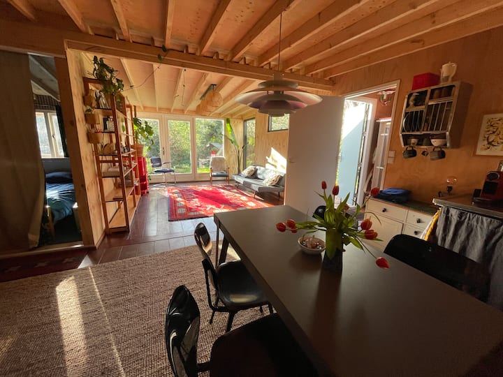 我叫Hanne,我和丈夫、3个青少年、我们的狗和鸡住在阿姆斯特丹。 我们是阿姆斯特丹最大的私人花园之一的幸运房东,位于一个可爱的街区中。