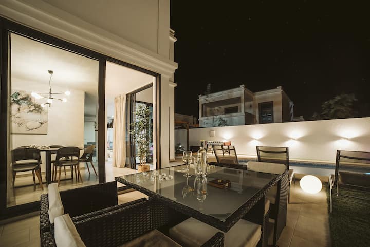 弗兰博扬别墅。恒温游泳池、按摩浴缸和空调