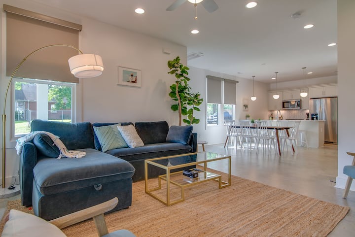 东纳什维尔的Hart完美融合了城市便利和宁静时尚的生活。 享受安全的停车位、设备齐全的厨房,供您烹饪冒险,以及为放松和娱乐而设计的起居区,配有豪华座椅和现代便利设施。 豪华房源位于楼上,主套房设有加大双人床、办公室角落和水疗浴室,以及额外的舒适卧室。 此房源将为您带来难忘的住宿体验,将城市探索的刺激与精心设计的空间相结合。