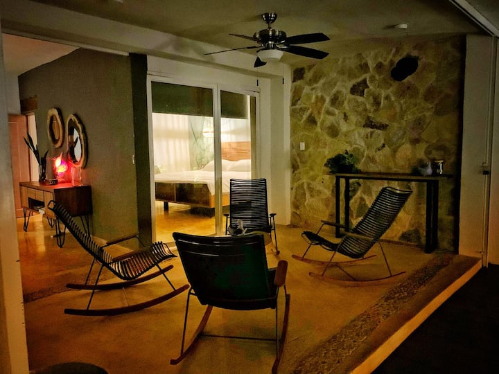 露台可俯瞰中心的泳池
