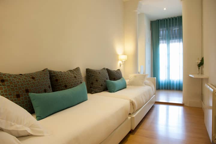 房间位于市中心,配有2张床和独立卫生间