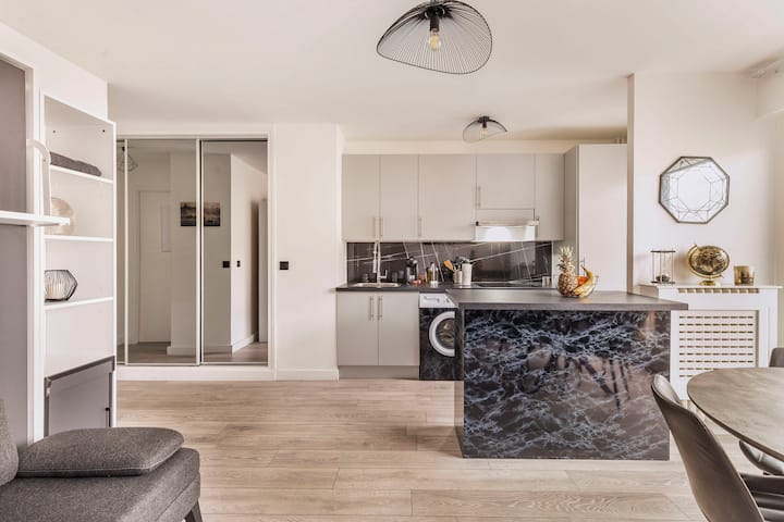 位于12区的迷人单间公寓。免费停车和地铁