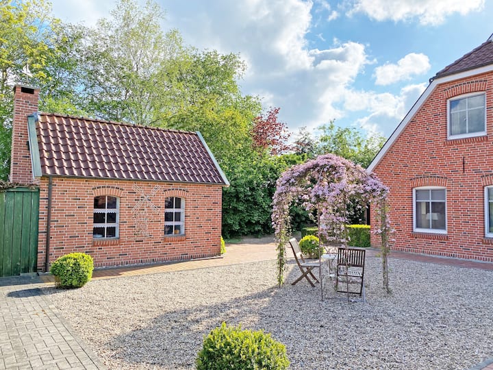 这套舒适的公寓位于东弗里西亚( East Frisia ) ,您可以欣赏到堤坝、Ems和Mitling Mark古老磨坊的美景。