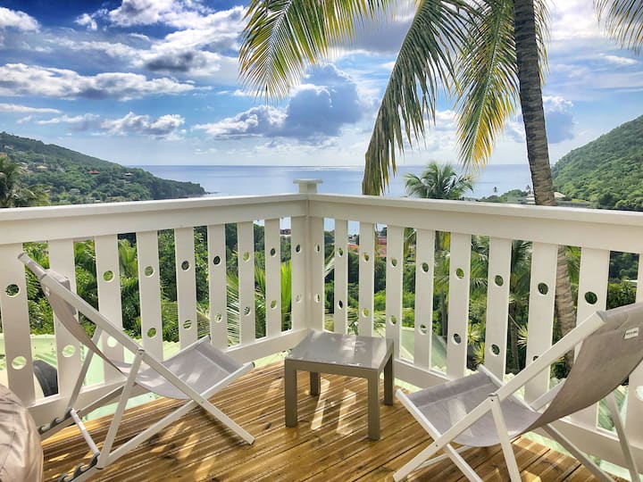 Gîte Tropikal 2人,Deshaies海湾海景