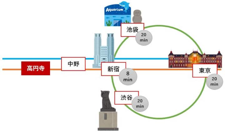 【高円寺駅徒歩1分】新宿駅まで快速電車8分/Wi-Fi/最大7名/長期滞在可