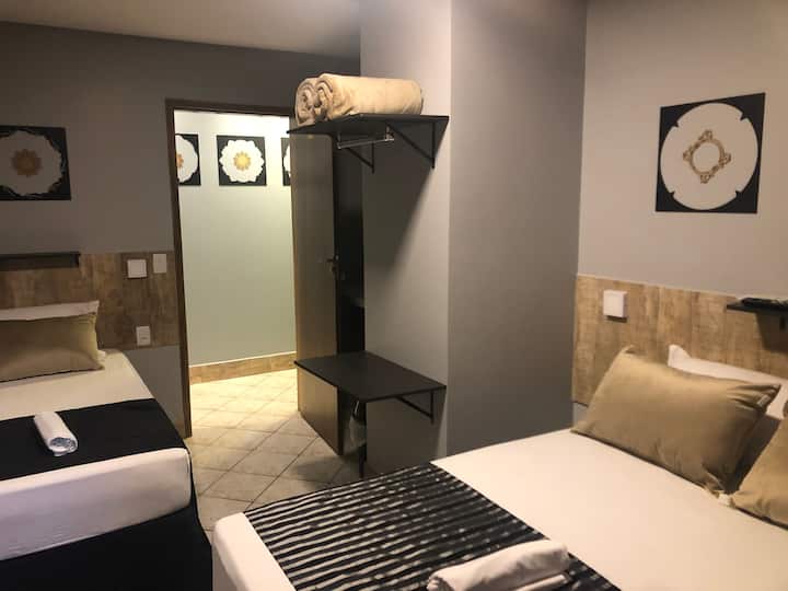 D套房 - 1张双人床和1张单人床/空调和电视