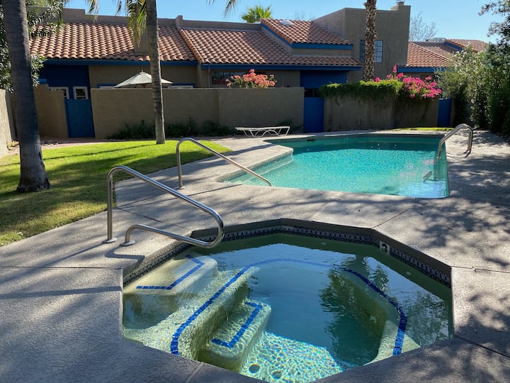 这座经过改造的美丽房源可供1-6个月入住,提供迷你度假村的生活方式,配备闪闪发光的泳池和水疗中心,内部还有极大的建筑效果。 大多数家具和电器都是全新的:床/床垫/沙发/冰箱/微波炉/烤箱/洗衣机/烘干机/书桌/... ! 客厅和主卧均设有Alexa的智能房源。距离U of A and Banner医院/UMC不到1英里! 非常适合寻找安静、安全、舒适住宿的来访教授/医生/护士/空军人员!