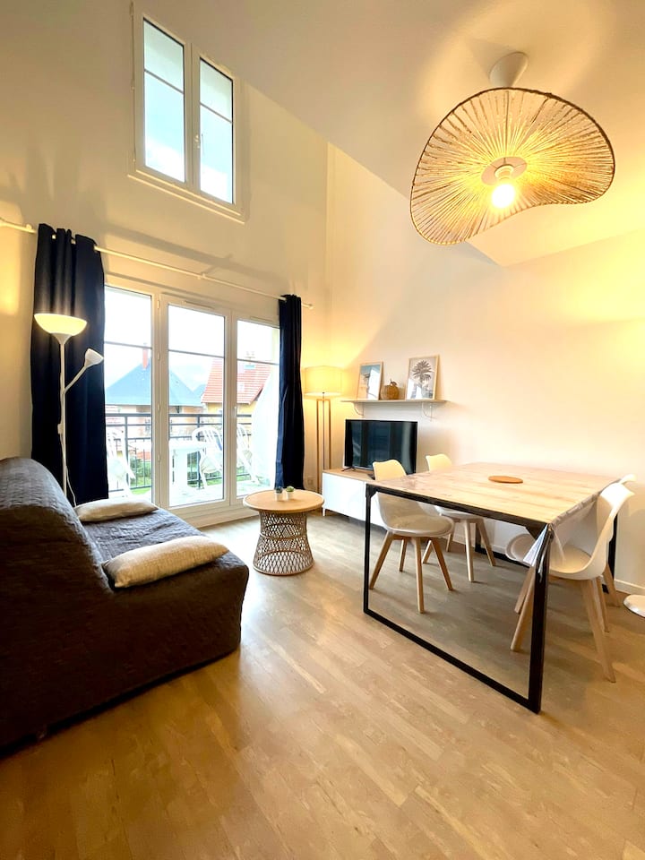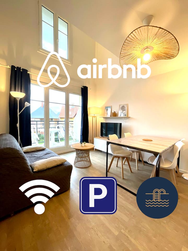 F3 海滩附近的舒适房源,带阳台和游泳池