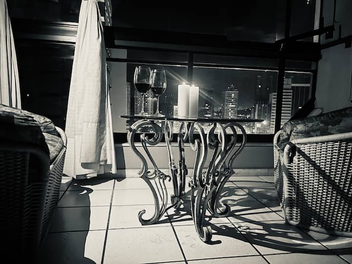 配备家具的公寓式酒店,配备空调、电视、无线网络、24小时安保、车库空间、游泳池、桑拿房、派对室、便利店和健身中心。