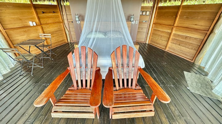 丛林中的小屋、海景、篝火、早餐