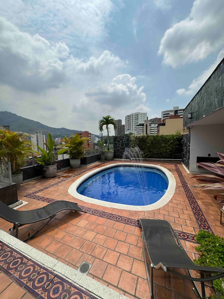 带迷人私人泳池的顶层公寓