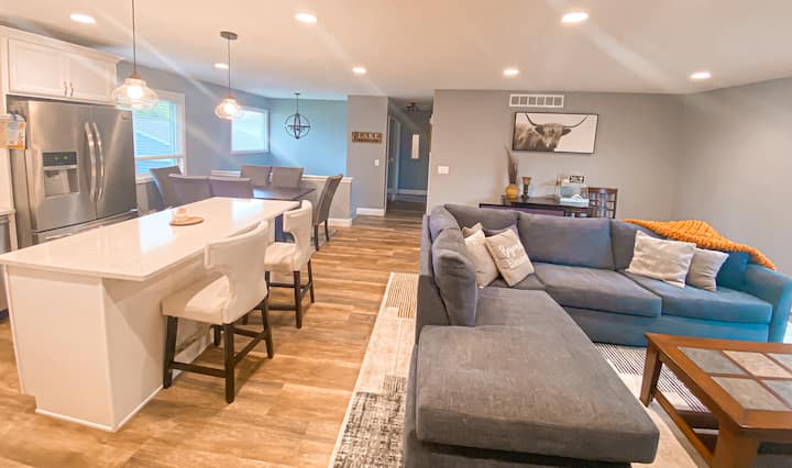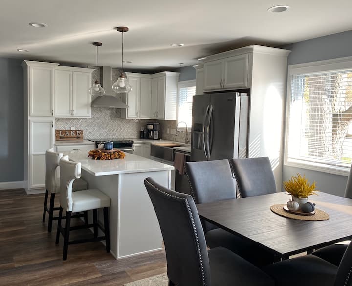 来我们的房源享受所有波内马湖(Lake Ponemah)运动吧。滨水,自然景观。距离芬顿市中心仅几分钟车程。享受划船、皮划艇、钓鱼等。在后露台上俯瞰水面,放松身心。3台智能电视,让您尽享舒适。厨房设施齐全,备有炊具、慢炖锅、Keurig咖啡机、滴漏式咖啡机、浓缩咖啡机、空气炸锅和Ninja。现场有带丙烷罐的烧烤架。湖泊生活是最好的生活。