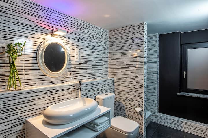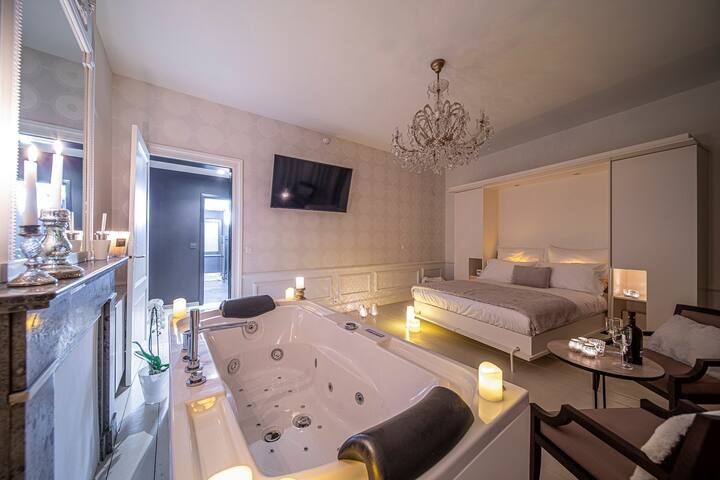 酒店套房,每个房间都有私人水疗中心。5间大套房经过精心装饰,优雅、大胆、宁静、感性和舒适。 这栋豪宅的魅力在于高高的模制天花板。 宽敞的浪漫空间,一定会让您的爱人惊喜。 美食、按摩……彻底放松身心。 测试它正在恢复 ;-)