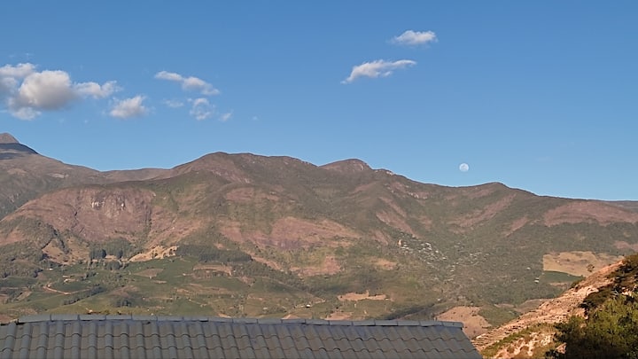 山脉的完美景观 简单温馨的房子