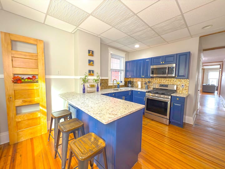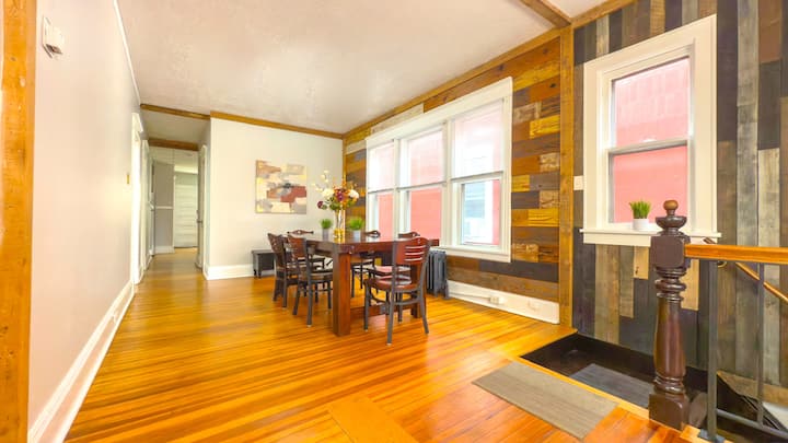 欢迎来到纽约州奥尔巴尼的这套乡村二楼公寓! 这座新装修的三间卧室、单浴室瑰宝非常适合最多6位房客舒适入住。 踏入可追溯至1890年的硬木地板原创历史。 用餐区宽敞,非常适合聚会,公寓配有65英寸智能电视,可满足您的娱乐需求。 需要赶上工作吗? 我们为您提供专用办公桌。 立即预订,获得难忘的体验!