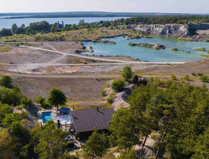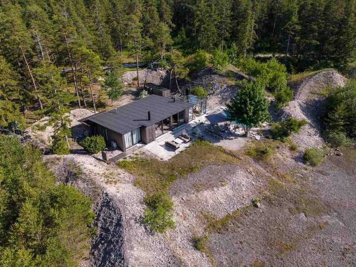 Bungenäs私人住宅,可俯瞰美景,配备泳池和户外房间