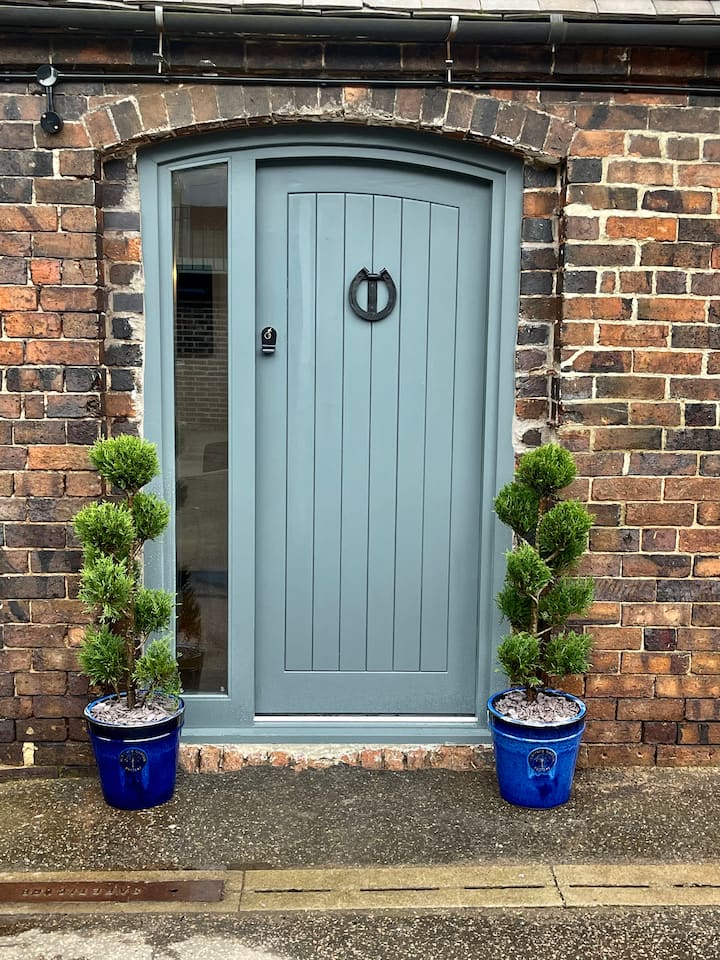 美丽的橡木和裸露砖块马厩改建。