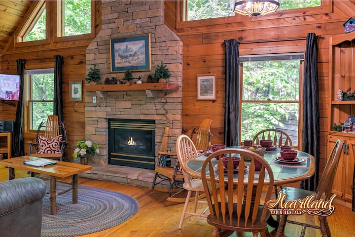 欢迎来到位于宁静的Gnatty Branch Village的浪漫小木屋度假胜地,位于加特林堡和鸽子锻炼场之间。 这间2卧2卫小木屋专为舒适度假和小家庭度假而设计,拥有山区魅力、周到的便利设施和完美的位置,距离多莉山和大烟山国家公园仅几分钟路程。