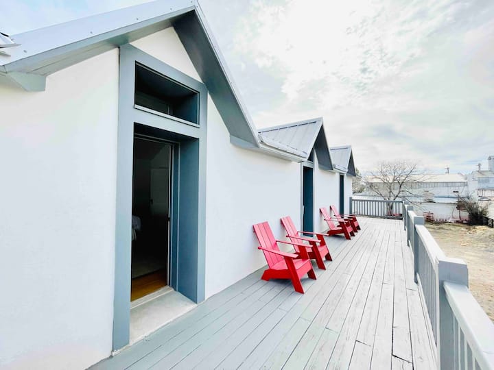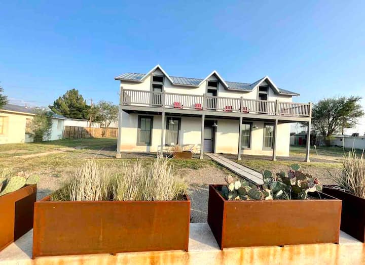 房源位于马尔法市中心。火车经过附近,充满生机和活力。隔壁的报纸The Sentinel早上提供咖啡,晚上提供鸡尾酒。享受外面的喧嚣,或在房源内享受宁静。地理位置优越,但可能会有噪音,因此请在预订时考虑这一点。每次火车经过时,我们都会举杯。