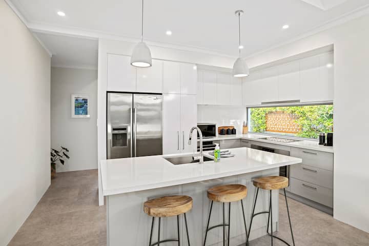 The kitchen has everything you need for a long or short getaway. Double fridge with ice & water dispenser, Nespresso coffee machine, dishwasher, microwave & huge 900mm oven & inverter cooktop.