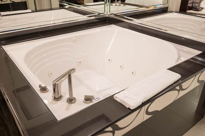 迷人的按摩浴缸水疗套房,配备投影电视