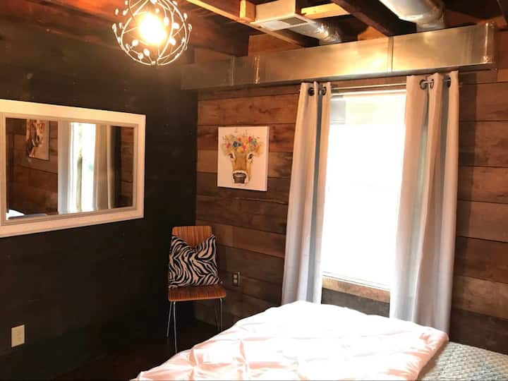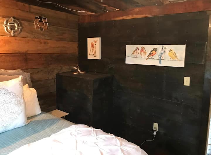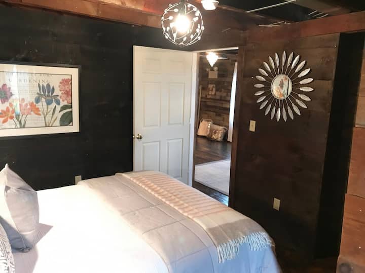 装饰不拘一格,家具舒适,您会立即感到放松。厨房设有超大的厨房岛,最多可容纳6人。将军厨房配备全尺寸冰箱、微波炉、全尺寸四灶烤箱、10人份咖啡壶、烤面包机以及齐全的玻璃杯、酒杯和餐具。餐厅设有5人以上的座位,您可以添加餐桌叶片,以容纳更多人。卫生间(由于具有历史价值,位于一楼)设有小型淋浴间,住宿期间可使用大量埃及棉毛巾、手巾和浴巾。您可以从那里开始您的楼上之旅,通过通往二楼的全木楼梯井。当您欣赏原始的历史木墙时,您将被带入一间起居室,里面有一张沙发床、两张4英尺记忆泡沫折叠客房双人床(如果需要)和备用座位。这层楼的两间卧室均配有舒适的标准双人床和豪华床上用品。我们为床上用品感到非常自豪,仅提供最好的床单、被褥和枕头。把它当成五星级的睡眠体验。每间卧室均配有阅读灯、镜子、行李箱架和挂衣服的地方。楼上的所有墙壁和地板都是木质的。这给人一种不太明亮的宁静外观。我们确实有充足的灯光,但这不会是明亮的灯光与白色的墙壁和天花板。我们希望房客尽可能轻装上阵,因此我们提供洗发水、沐浴露、备用牙刷、剃须刀、牙膏、剃须膏、卸妆湿巾、吹风机等等!将军还配备了全尺寸洗衣机和烘干机,可与洗衣液和柔顺剂及干衣纸一起使用。为了方便起见,我们提供该地区最高速的无线网络和插座,您可以将USB线缆插入The General的院子,院子占地1英亩,有很多停车位。外面有一张很棒的六人餐桌,配有遮阳伞。我们还提供火坑和木炭烤架,供您在夜晚星空下享受美好时光。