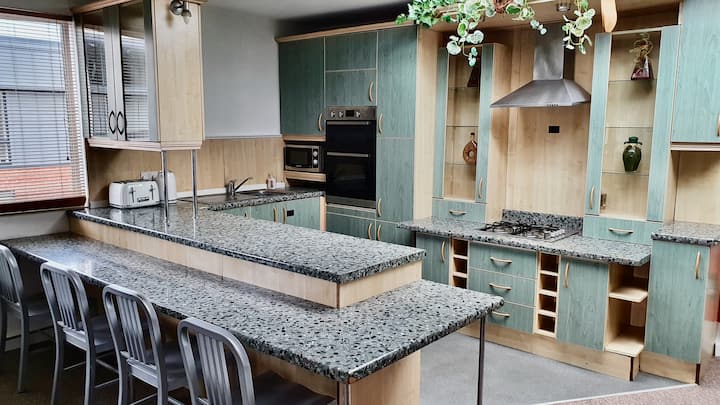 我们也是!驴子多年来一直这样做,因此室内装潢不断改造,以实现最大外观和最小的维护和潜在损坏。 没有昂贵的瓷砖裂开,家具很暗,易于更换扁平包。 很少有柔软的家具,很容易被标记或弄脏,例如沙发是皮革的,椅子非常耐用,可以擦拭干净。 窗帘防污渍。 浅米色地毯很受欢迎,但却是一场噩梦,因此所有地毯都是深色、短桩、耐污和商业品质,甚至可以用漂白剂清洁。 请记住,警方可以在任何谋杀现场采集DNA! 此外,没有昂贵的壁纸会损坏,整个房间都涂有油漆,这意味着我们可以非常快速、经济地修复和匹配颜色(白色)。 室外已使用优质油漆和墙壁,因此大多数时候都可以轻松擦拭干净。 这不是美食节或红葡萄酒节的邀请! 我们知道意外难免会发生,但请爱护房源。 我们所说的是,与其他拥有昂贵墙纸、轻地毯和豪华窗帘的房屋不同,您可以更加放心。